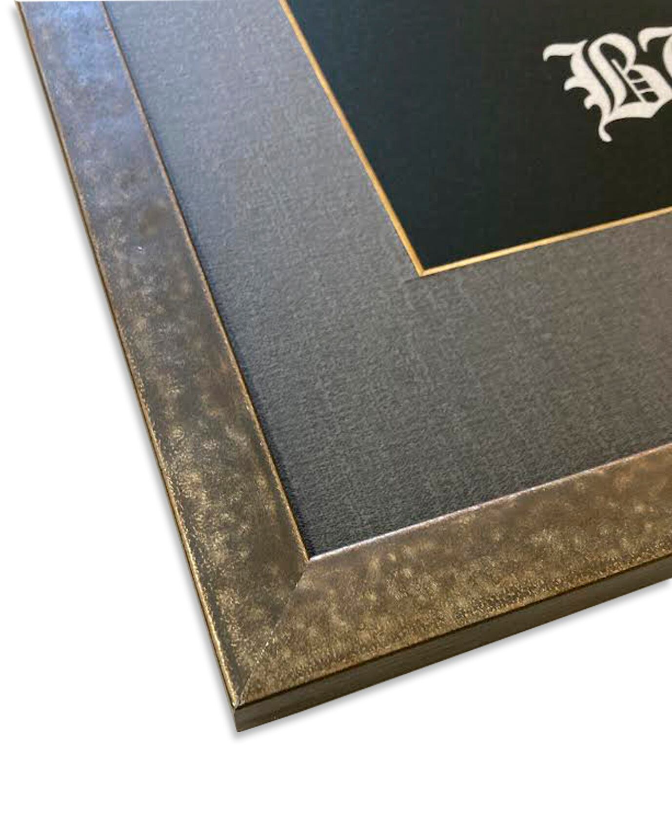落ち着いた質感のマットと、マットゴールドの内枠が作品全体に奥行きと品を与えています。