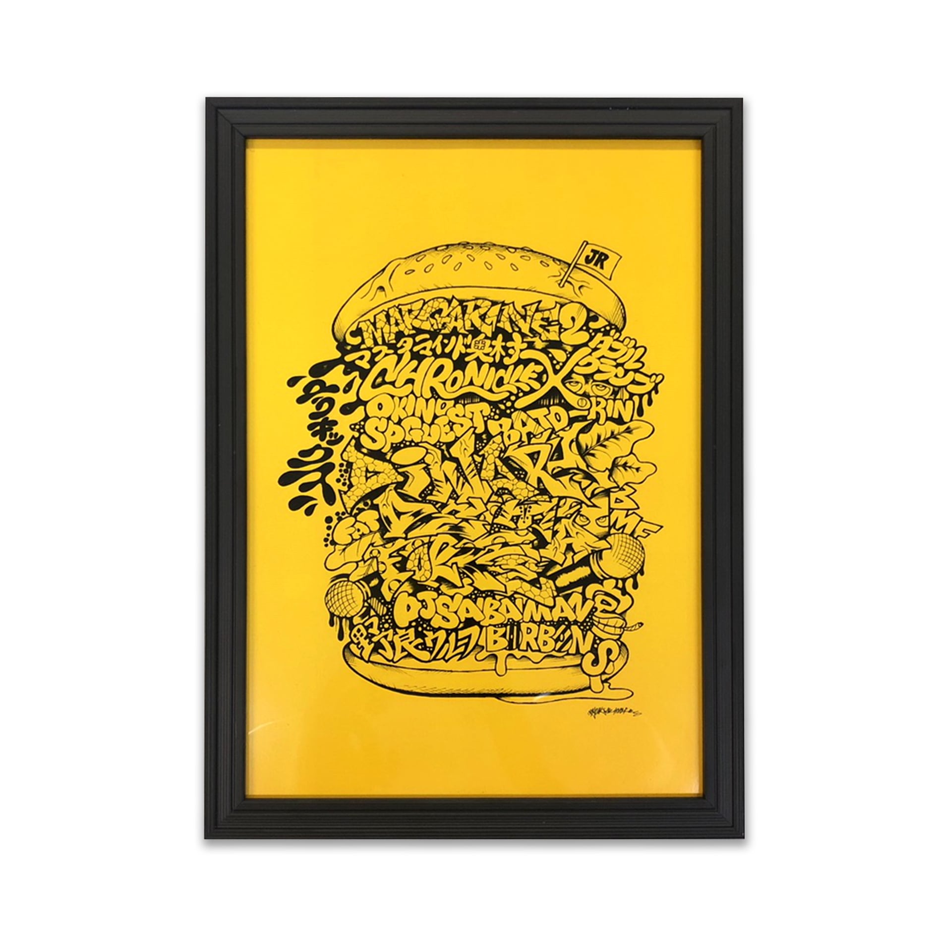 グラフィーアートが挟まれたハンバーガーのイラストがポップで目を惹く人気の絵柄です。