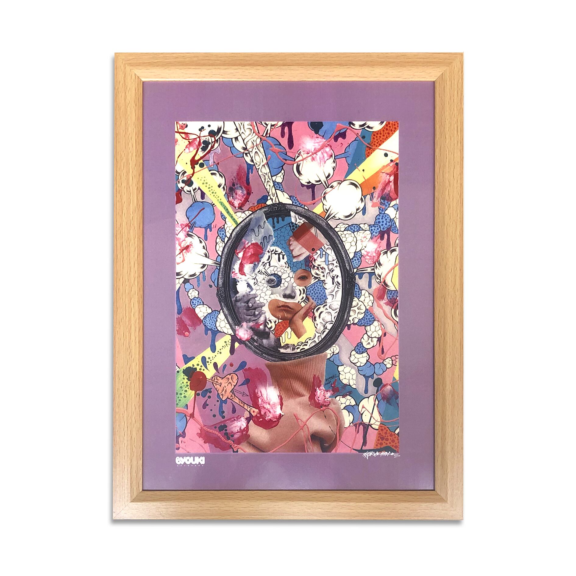 コラージュアートの面白さとクールな雰囲気がカッコいい額装入り立て掛け用ポスターです。
