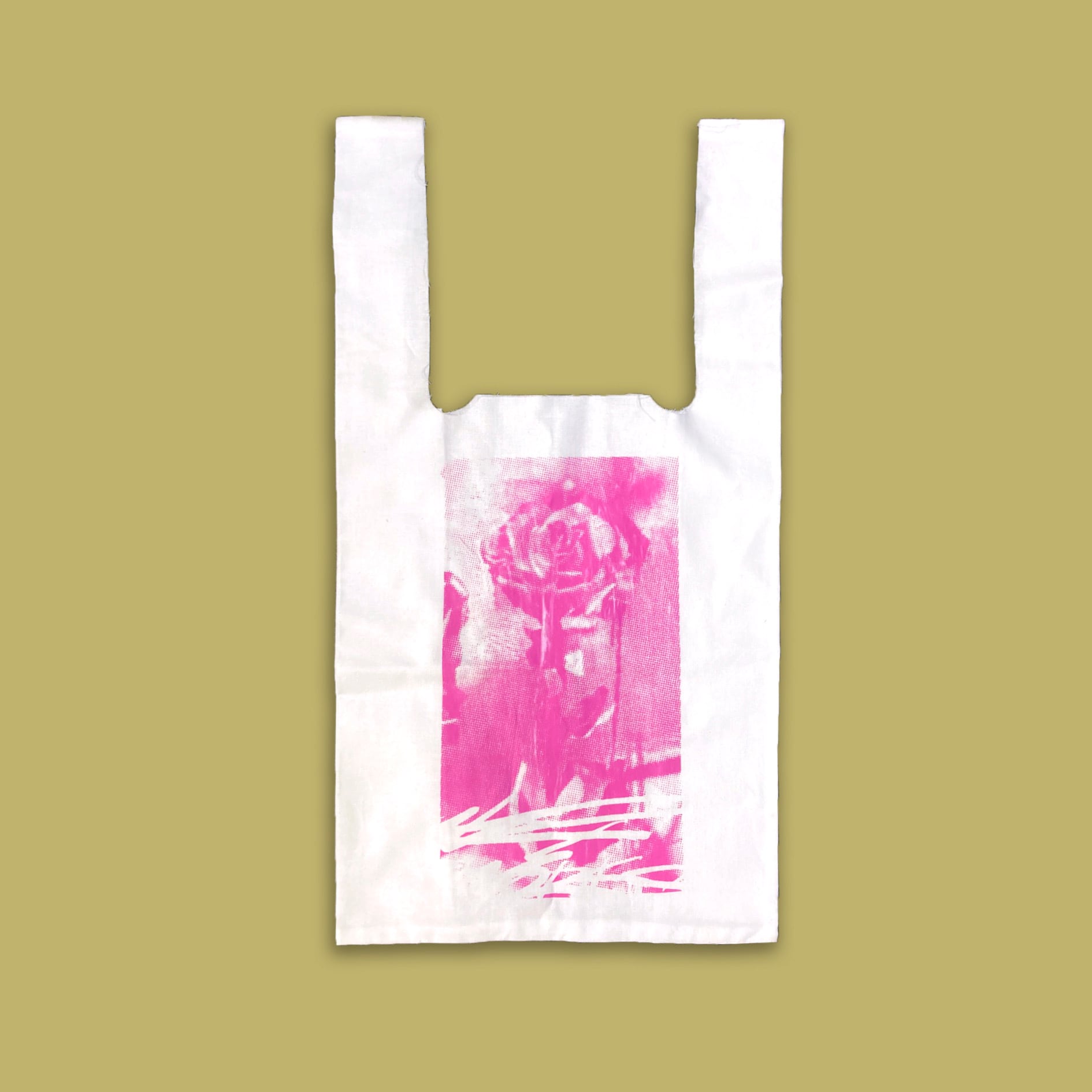 byouki artworks 2022年を代表する花のコラージュ作品がシルクプリントされた、ポリ製ではなくシーチング生地を使用したエコスタイルなレジ袋です。