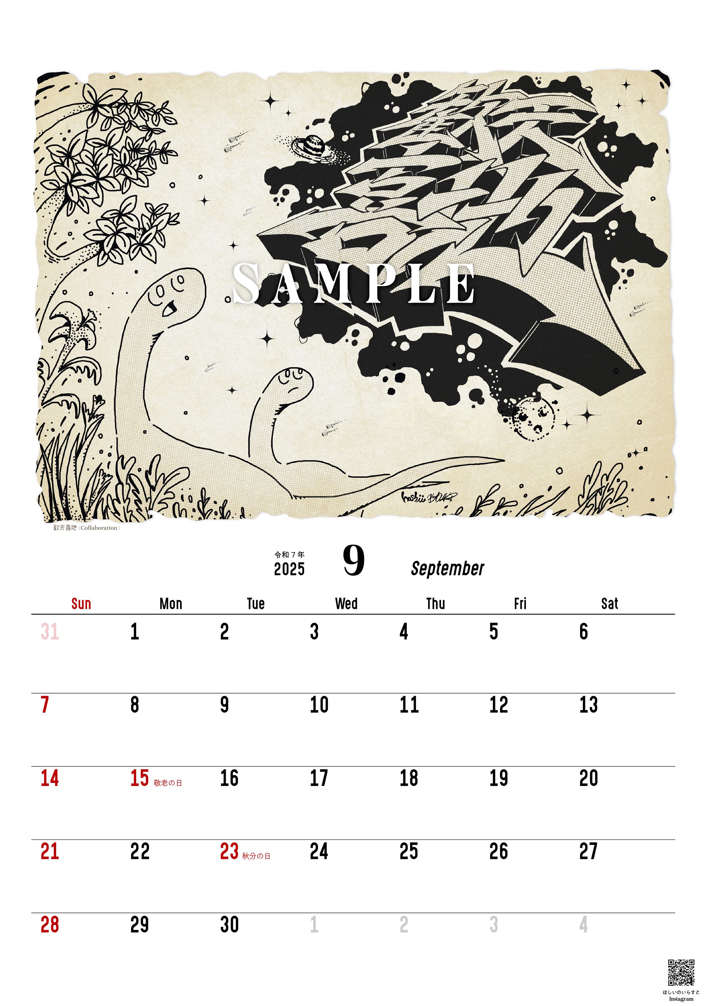 2025年描生ARTWORKSの壁掛けカレンダーです。